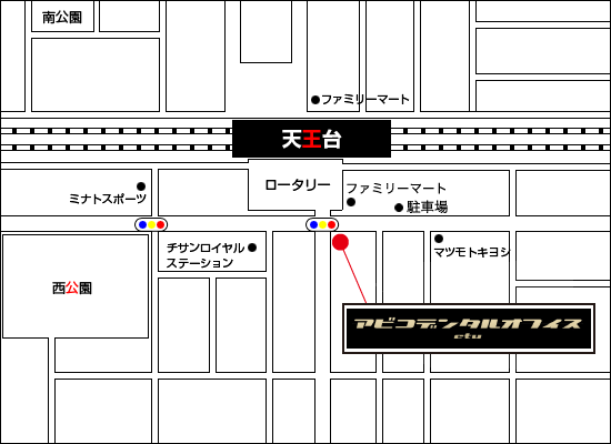 アビコデンタルオフィスは、アクセス良好な、JR常磐線天王台駅南口ロータリーにございます。